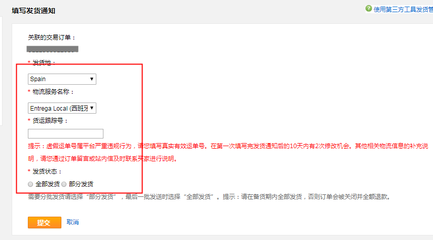 4) If there is a problem with the logistics order that declares the shipment for the first time, please be sure to modify the logistics order number that declares the shipment within 10 working days. The platform does not accept the logistics order number that informs the buyer in other places such as order messages, buyer communication, etc., and only recognizes the logistics order number that declares the delivery in the order.