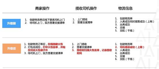 before the upgrade: the logistics network is online after the small package is put into storage