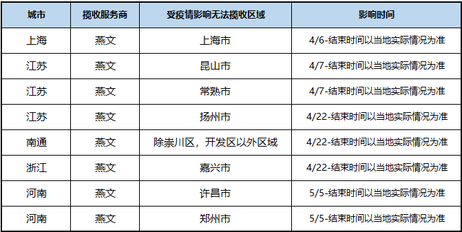 Note: Due to the daily changes of the epidemic, other areas that are not within the above scope but also affected by the epidemic, please refer to the actual local collection situation.