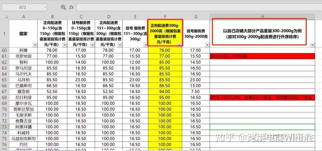 AliExpress downloads the quotation of China Post registered parcels in the background, deletes redundant rows and columns, and filters them to get the following table (depending on your own product situation, if it is in your own store, it is basically 300g-2000g, so the price in this stage is subject)