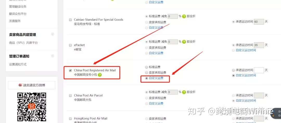 Click to expand the settings, find the registered package of China Post, and select the custom freight.