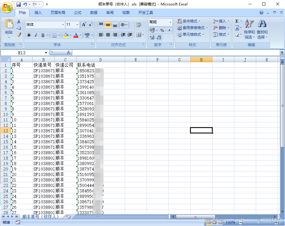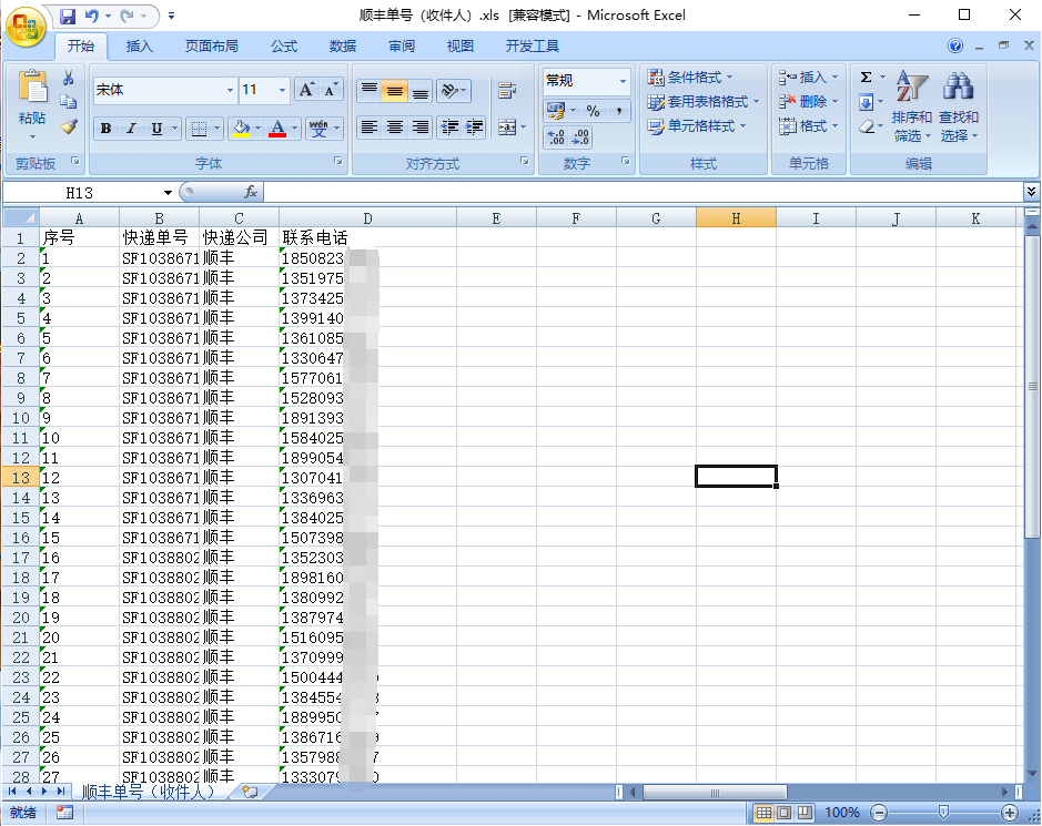 Save the SF order number, recipient phone number and courier company that need to be inquired in the same EXCEL form.