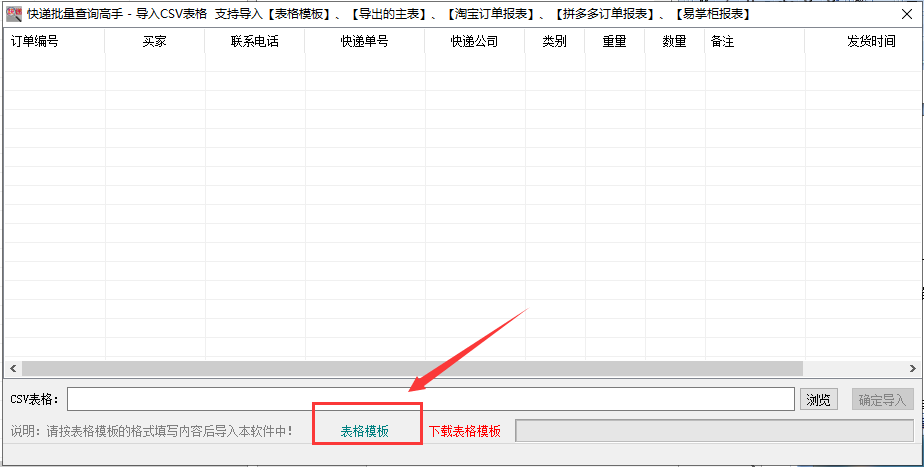 Pop up dialog box, select "Form Template" and start importing the express waybill number, the last four digits of the mobile phone and the courier company in the corresponding table.