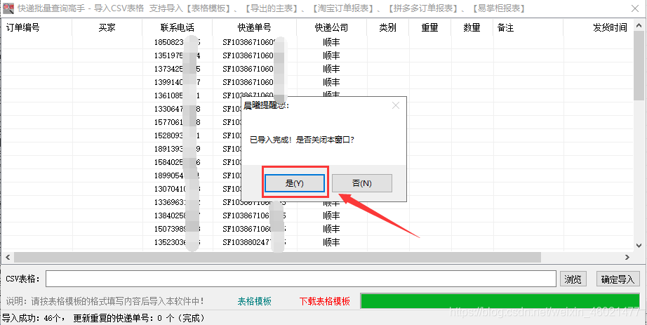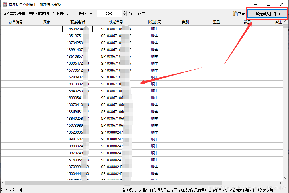 Display a table, copy and paste the order number, the courier company and the corresponding recipient's phone number with one click, and then click OK Import Software.