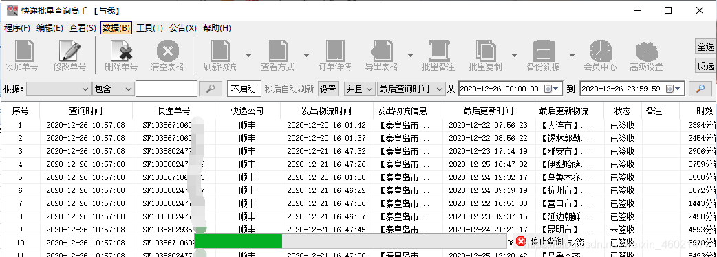 Save it, the progress bar scrolls, indicating that you are querying the logistics. When the query is completed, you can see it.