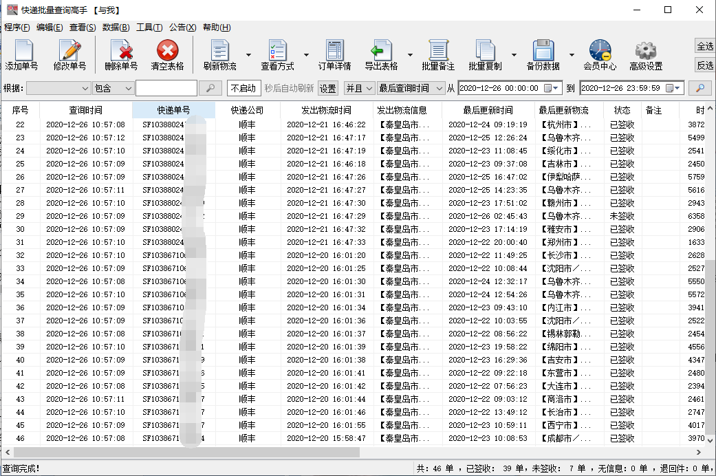 After all the order numbers are checked, you can also see the logistics status of each express waybill number.